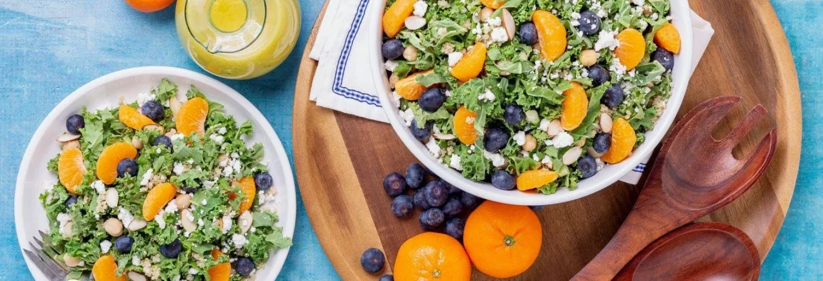 Searching for a protein-packed salad recipe to help keep you full without weighing you down? This Cuties® Clementine and Blueberry Kale Salad is full of good-for-you ingredients to fuel you up after lunch.